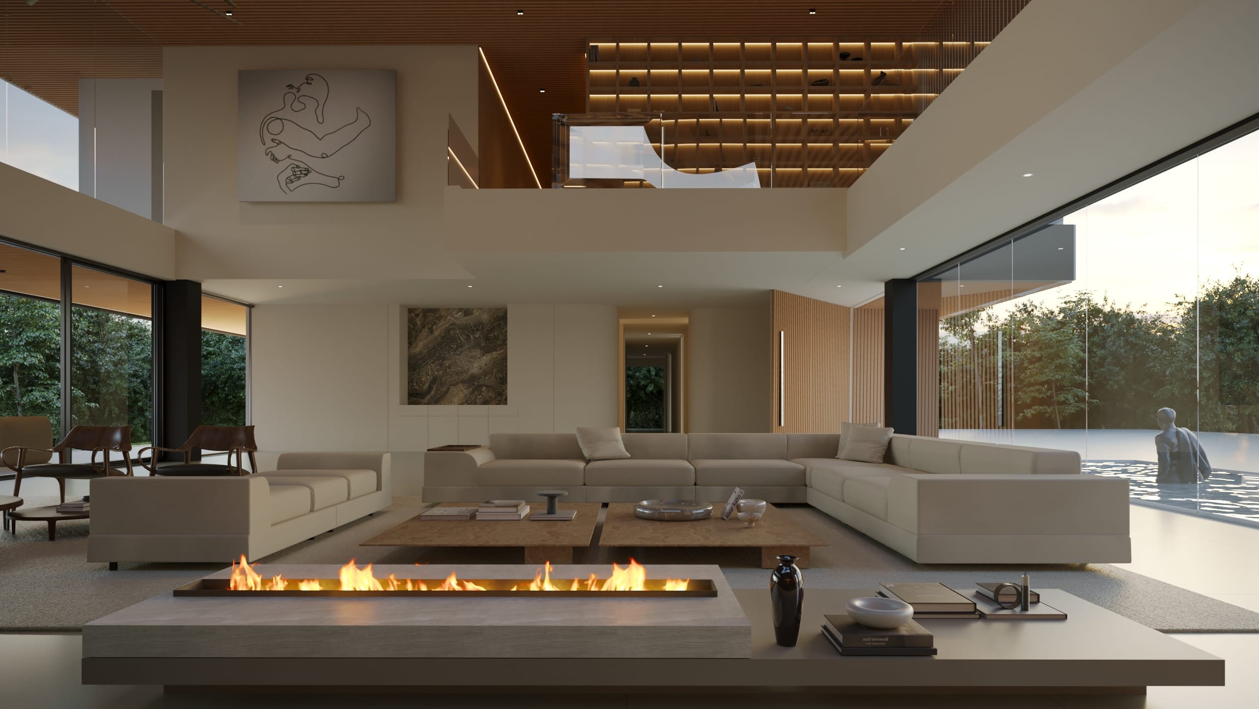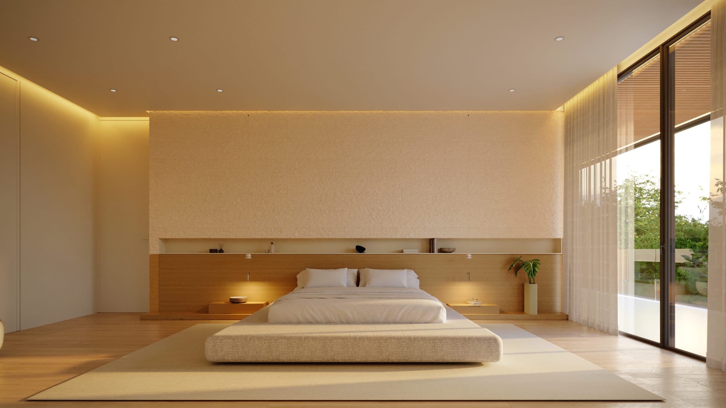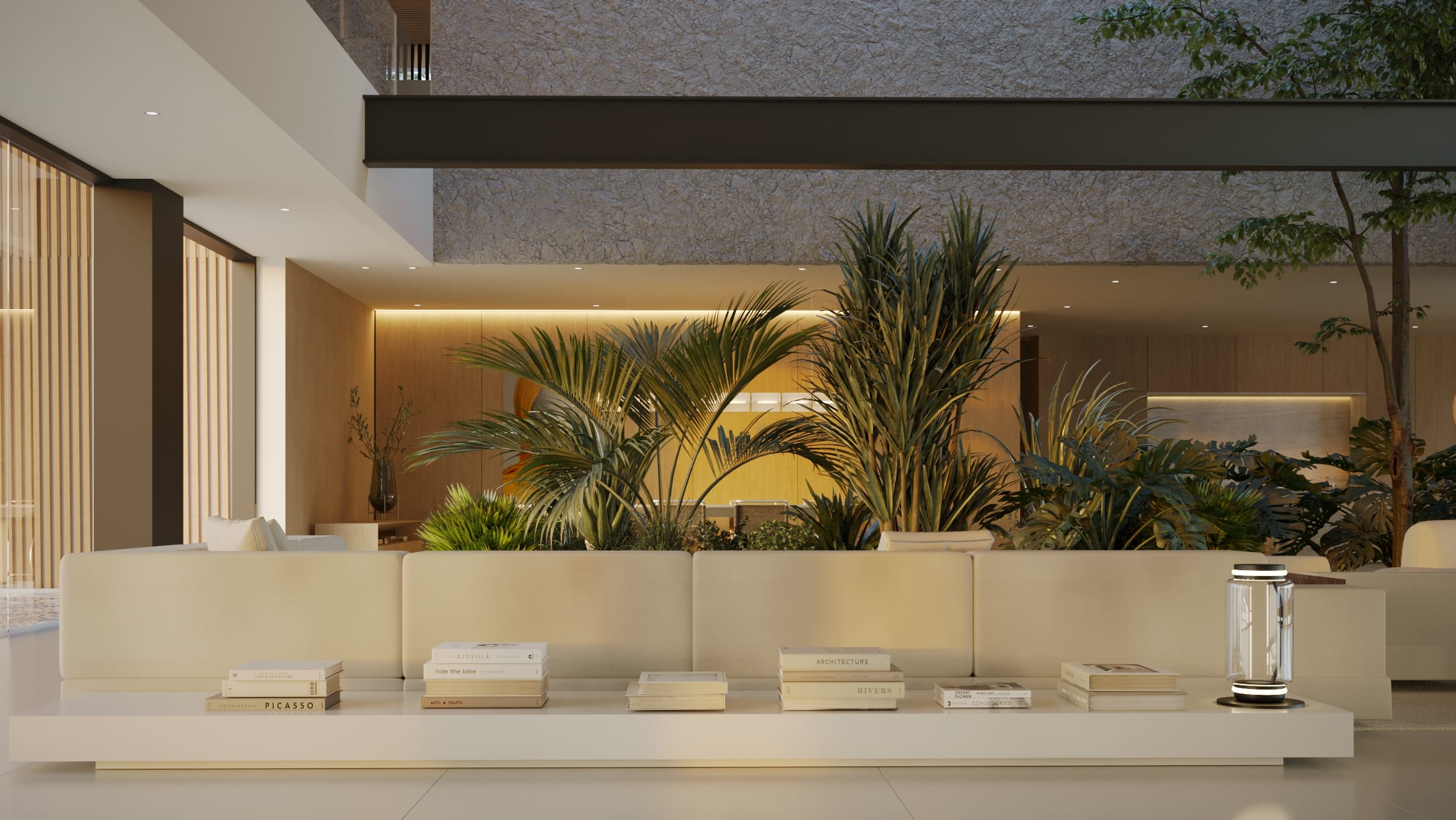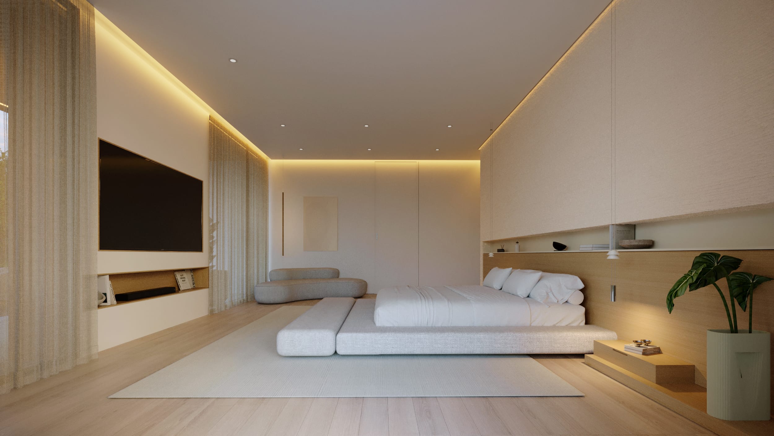 High ceilings and fluid layouts evoke lightness, while a palette of classic, neutral tones grounds the home in calm sophistication. Texture becomes the main ornament, wood, stone, and soft fabrics add warmth without excess. Each surface and material was chosen to express serenity and permanence, crafting a sense of renewal through restraint and clarity.