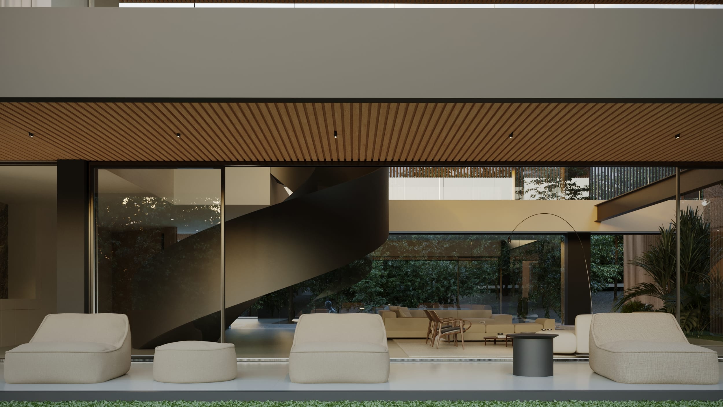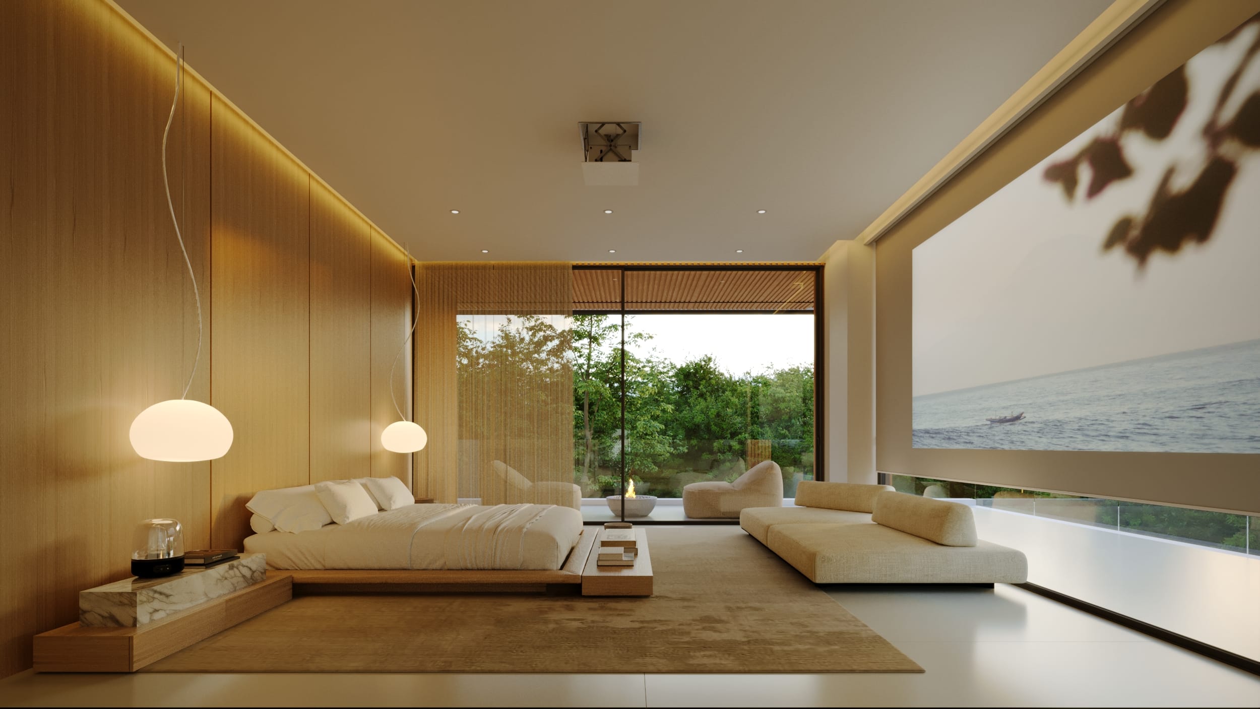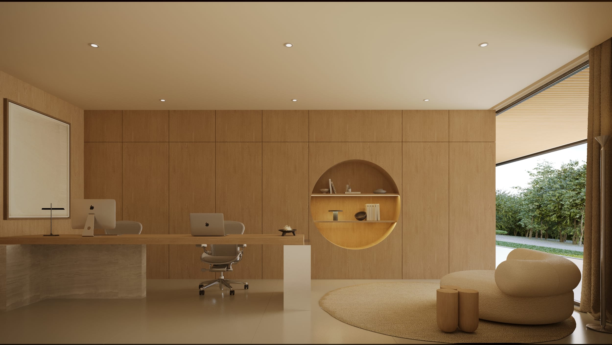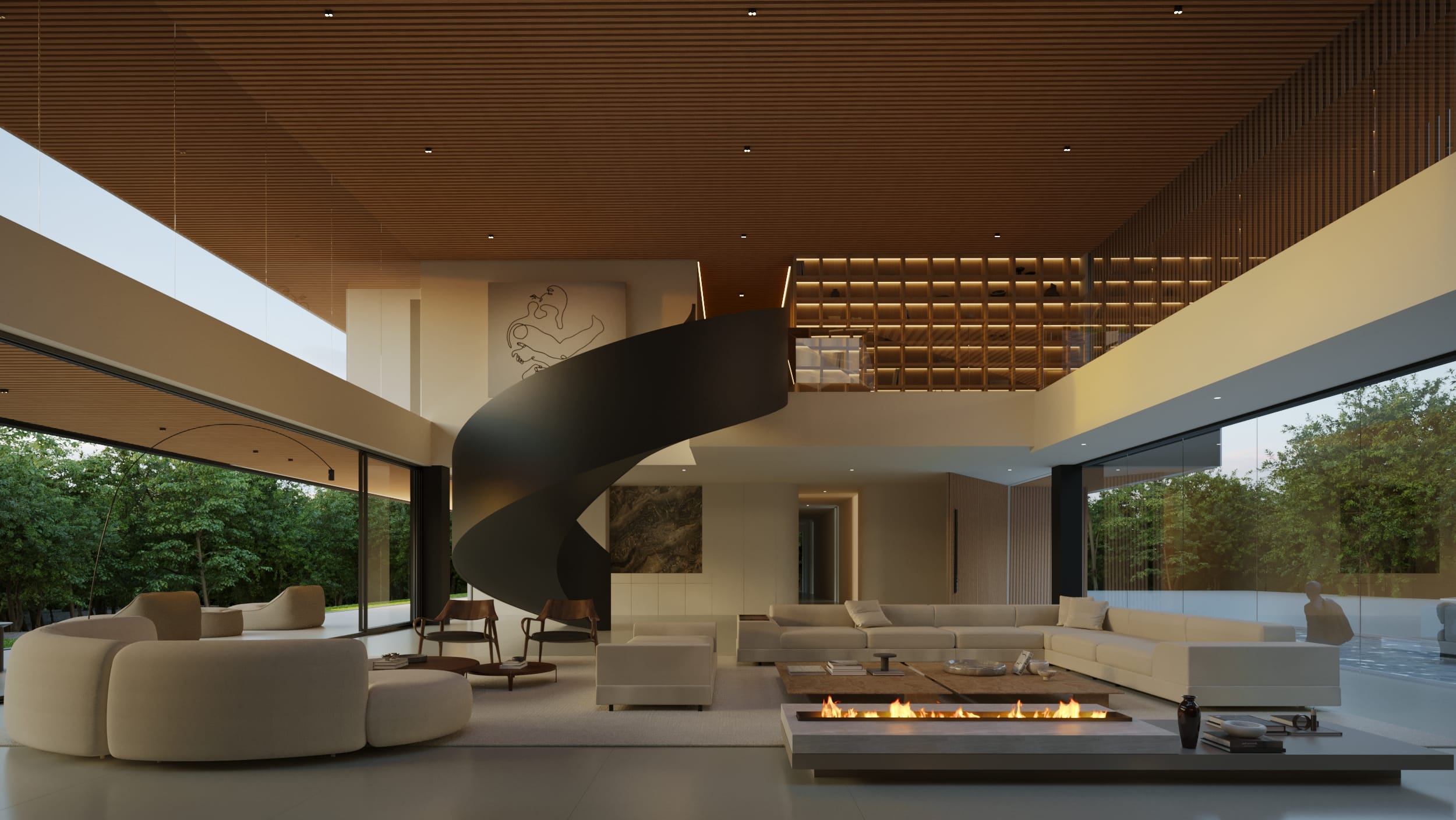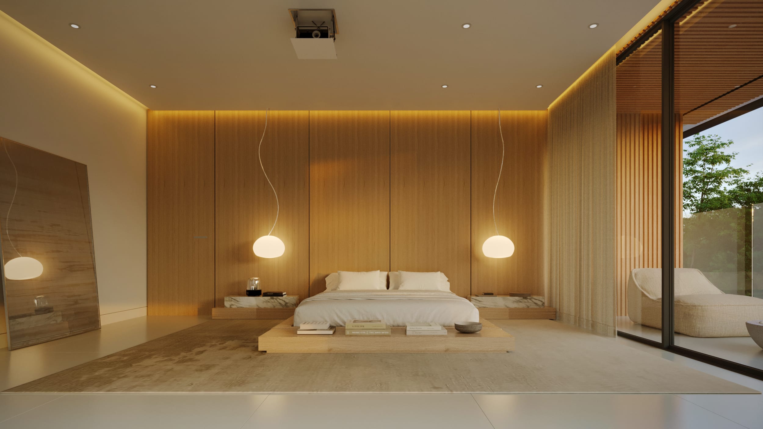 High ceilings and fluid layouts evoke lightness, while a palette of classic, neutral tones grounds the home in calm sophistication. Texture becomes the main ornament, wood, stone, and soft fabrics add warmth without excess. Each surface and material was chosen to express serenity and permanence, crafting a sense of renewal through restraint and clarity.