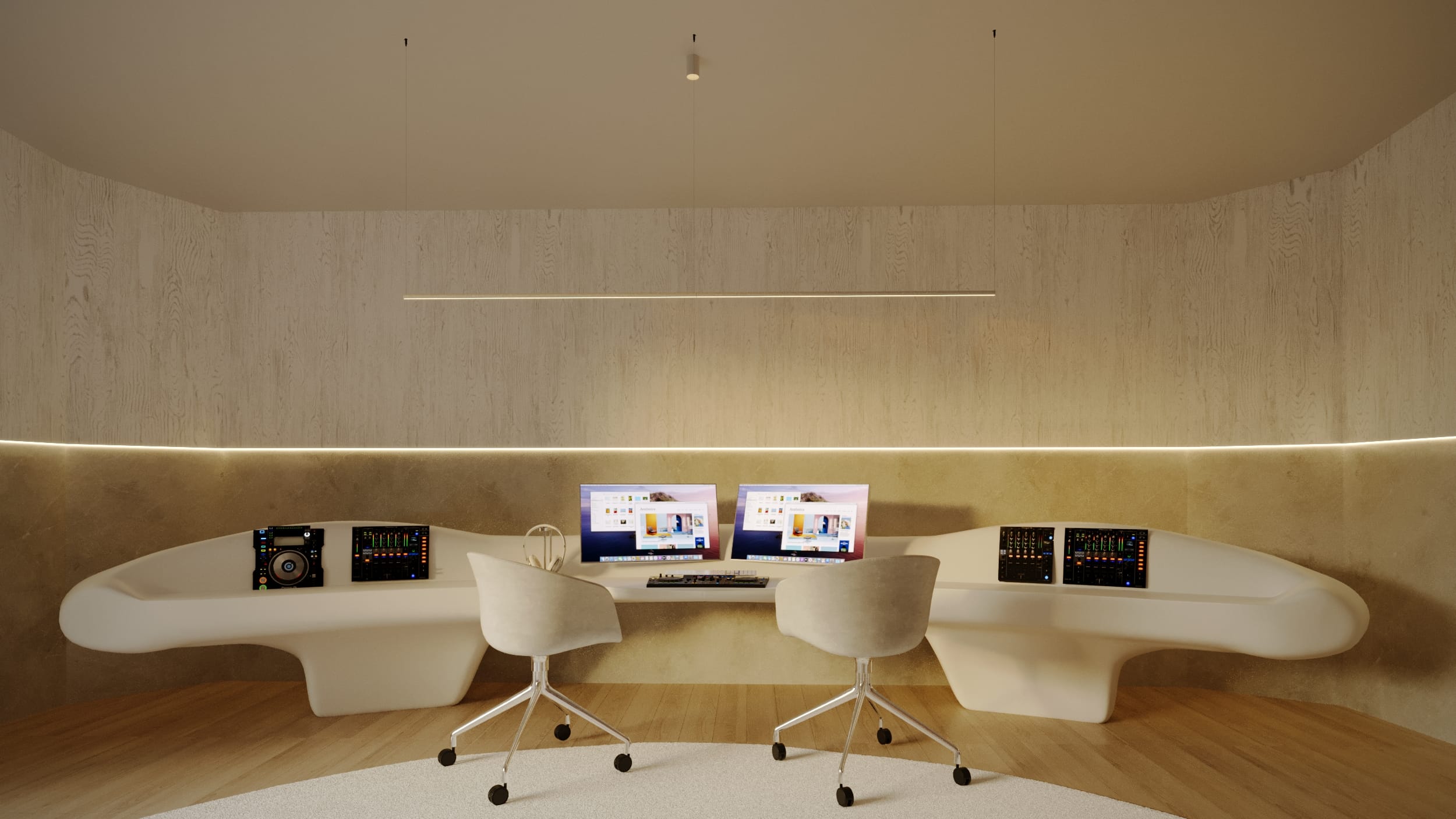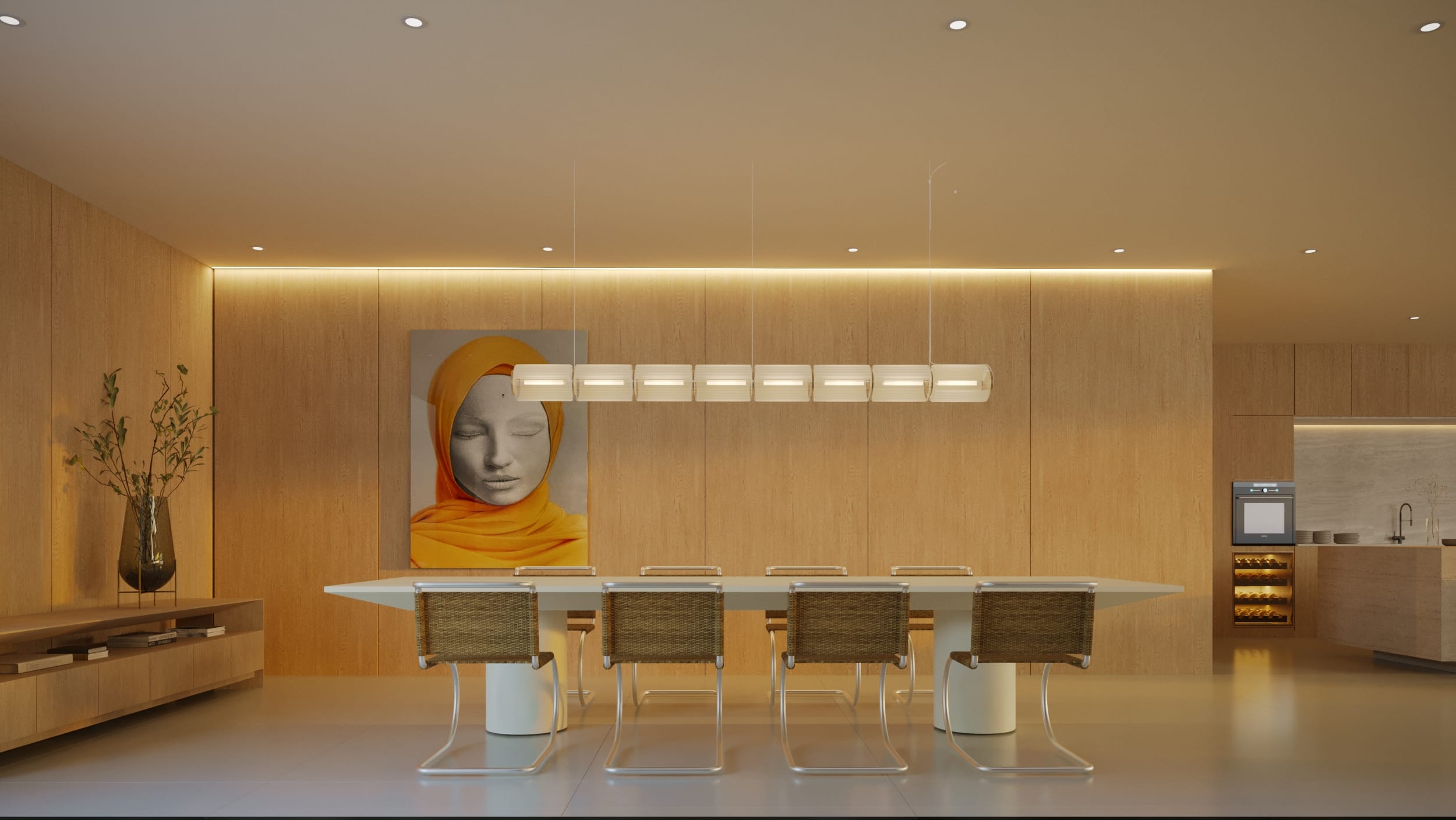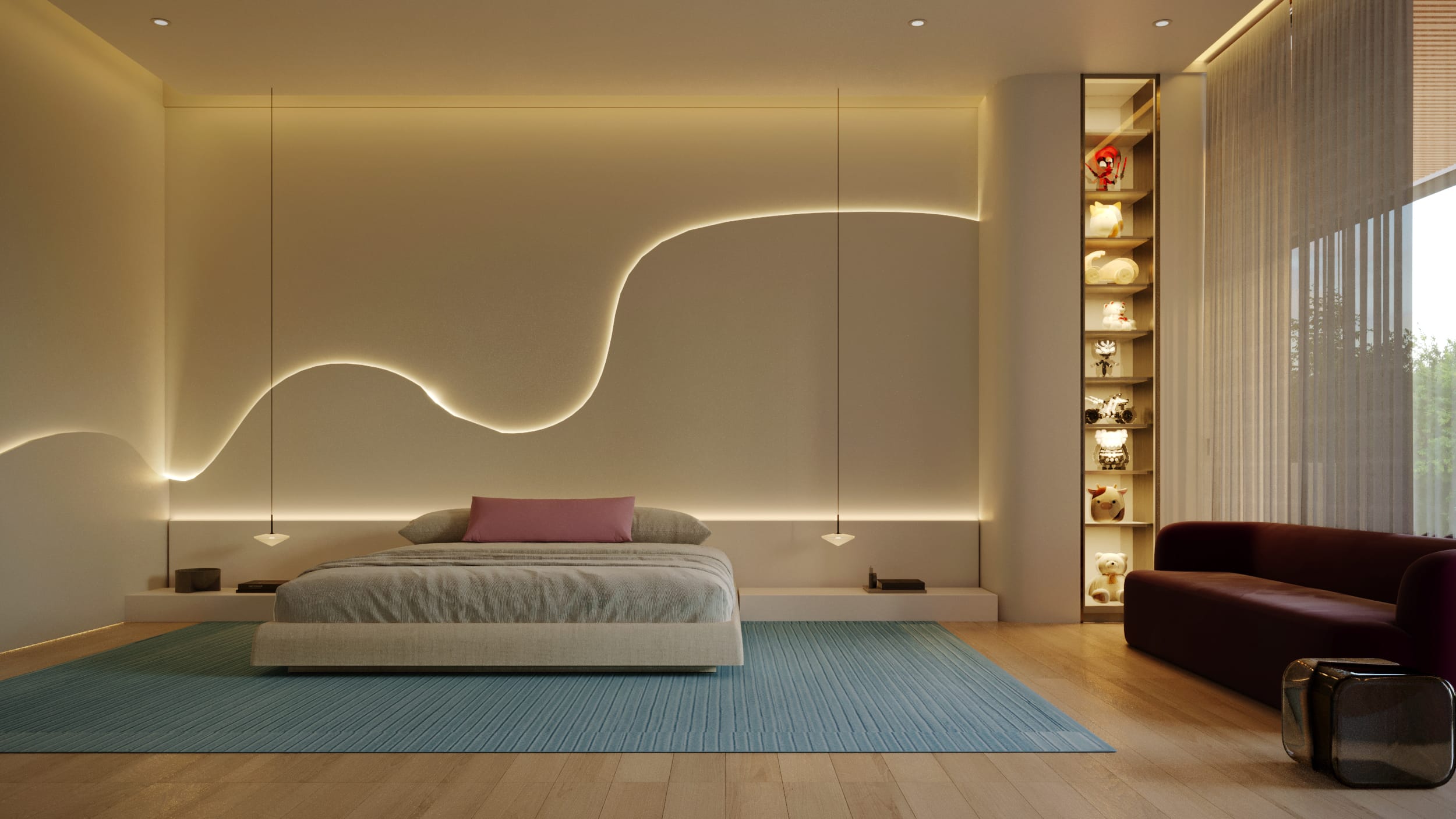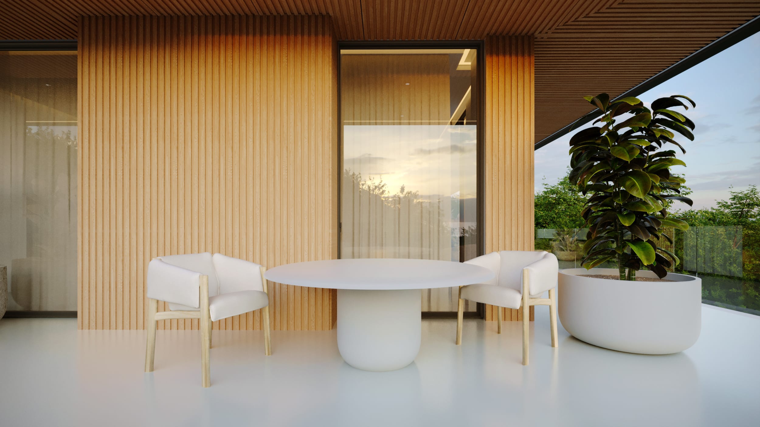 High ceilings and fluid layouts evoke lightness, while a palette of classic, neutral tones grounds the home in calm sophistication. Texture becomes the main ornament, wood, stone, and soft fabrics add warmth without excess. Each surface and material was chosen to express serenity and permanence, crafting a sense of renewal through restraint and clarity.