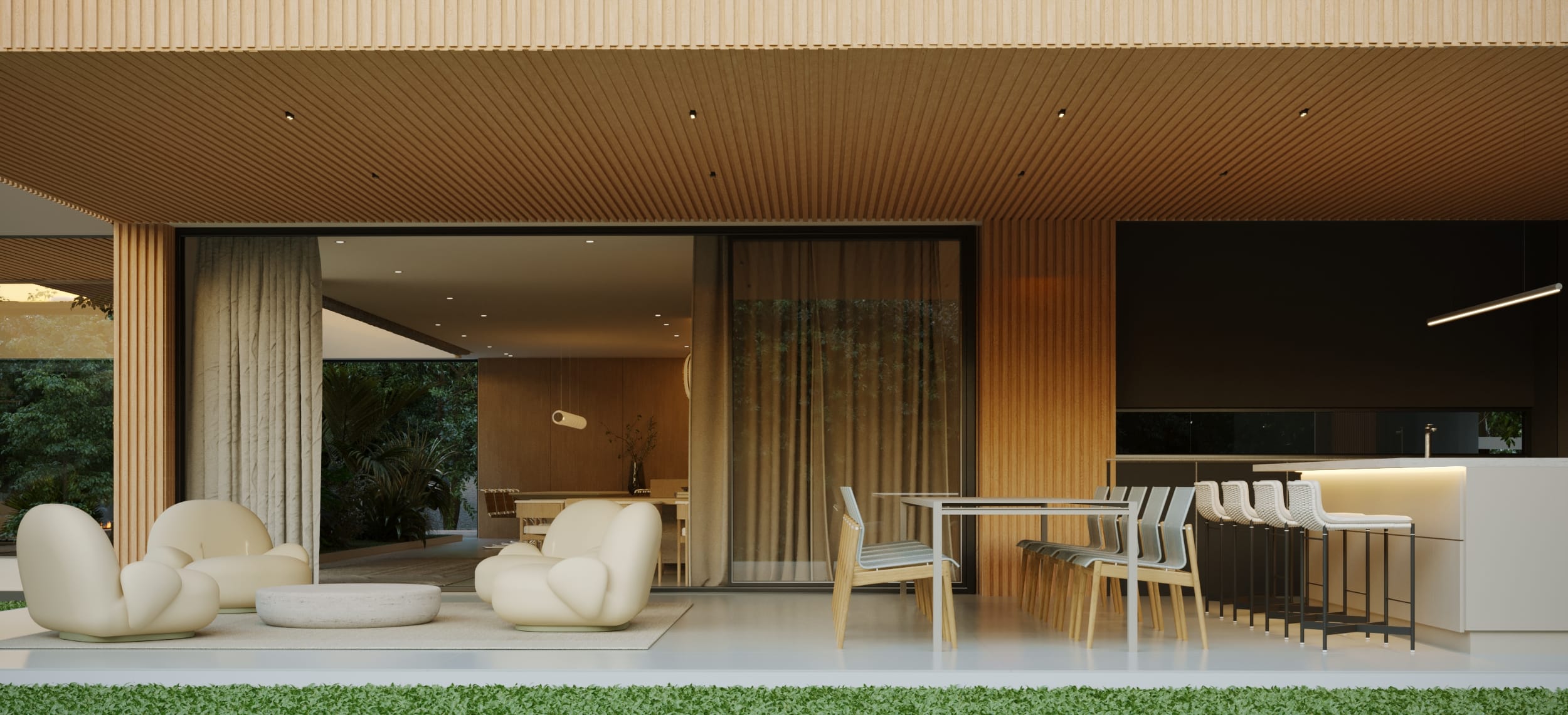 Named Renacer—Spanish for “rebirth”—this residence in Medellín embodies a new beginning for the family who inhabits it. The architecture draws inspiration from modern Brazilian design, defined by openness, balance, and connection to nature. The interiors extend this dialogue with a minimal yet layered approach, creating a space that feels both expansive and intimate.