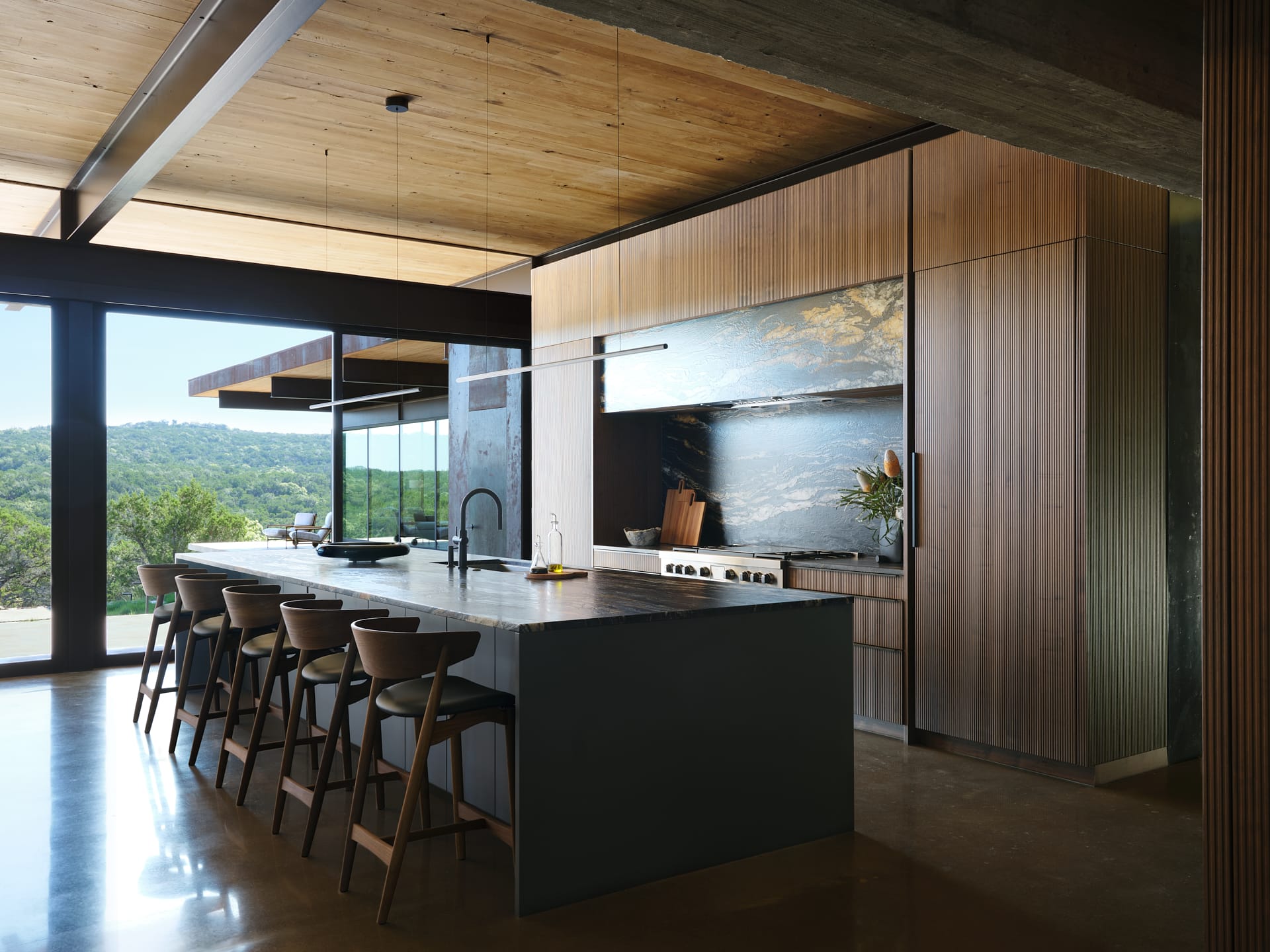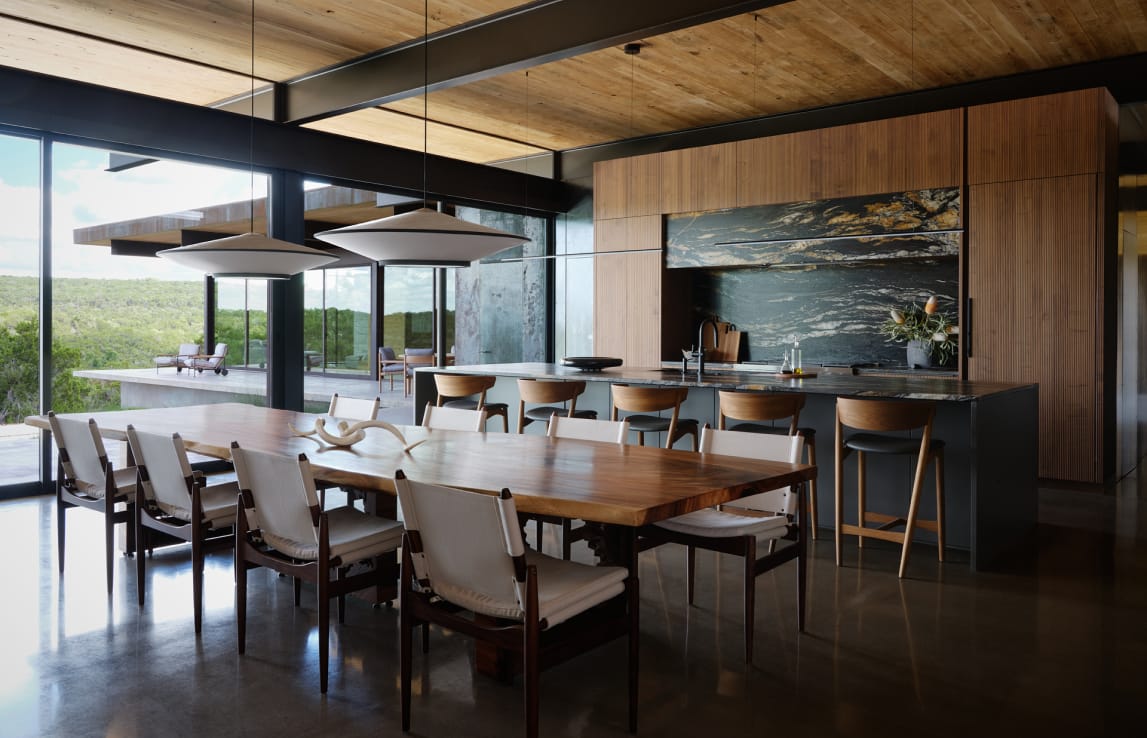 Set on the outskirts of Austin, near a natural reserve and the city’s zoo, this home captures the spirit of Texas through a refined balance of rustic charm and modern design. Architecture defined by clean, linear forms is softened through the use of raw materials like sawn wood, concrete, and exposed steel, creating a dialogue between structure and nature.