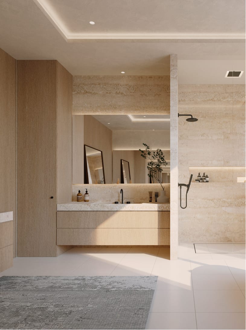 As the designer of the interior architecture, layouts, furniture, and finishes, I created spaces that emphasize natural materials and refined finishes. The common areas were also designed to foster a sense of community, complementing the luxurious private residences.